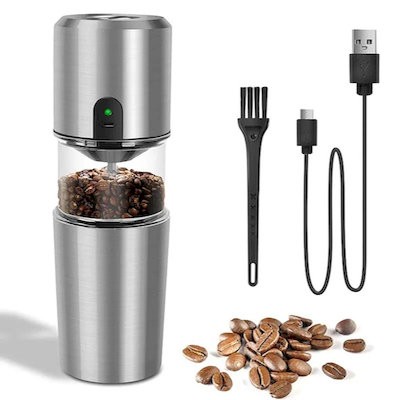 the Portable Automatic Burr Coffee Grinder Comes with Filter & a Removable Mug, Grinding & Brewing All in One Machine. Our Conical Burr Coffee Grinder Can Adjust the Coarseness of Coffee by the Knob, From Fine to Coarse. This Coffee Grinder is Perfect for Espresso, Pour Over, Drip, Percolator, Cold Brew & French Press. This Cordless Coffee Grinder is Made From High Quality 304 Stainless Steel Metal, Safe & Durable. Its Easy to Detach & Clean, All Parts Can be Washed Except the Grinding Head. the Electric Portable Coffee Grinder Can be Charged by Computer, Car, Chargers & Power Bank Via Type-c Cable, Built-in 1200mah Battery, Fully be Charged in 1.5h. One Fully Charged Can Grind 120g Coffee Beans.
