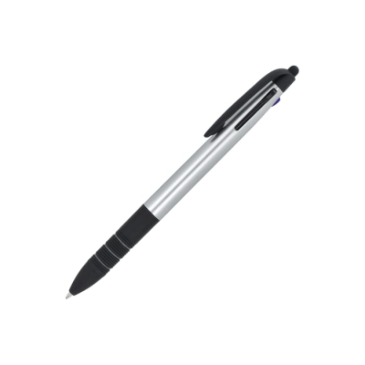 3-Colour Metallic Ball Pen with Stylus & Soft Ergo Grip. the Writing Colours Are Black, Blue & Red. Minimum Quantities Apply.
