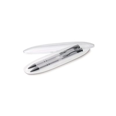 Writing Set with Alicante Ball Pen (Lt87915) & Pencil (Lt89216) in Oval Clear Transparent Gift Box. Print is Standard on the Gift Box. Minimum Quantities Apply.