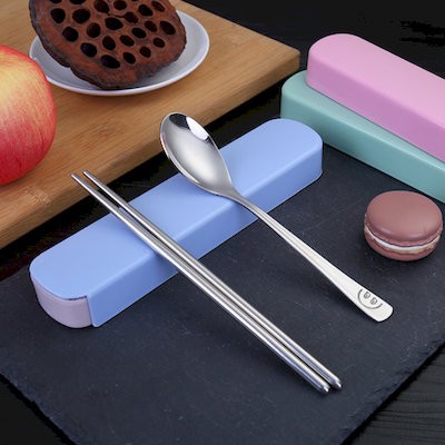 It is Possible to Customize Logos Two-piece Stainless Steel Metal Cutlery Set, Creative Smiley Spoon Chopsticks Set, Opening Promotional Small Gifts, & Can Also be Used as a Travel Dining Tool, in Which Chopsticks Can be Replaced with Forks.