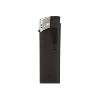 an Electronic Frosty Refillable Lighter. Matt Silver Colour Cap. Child-Resistant. Minimum Quantities Apply.