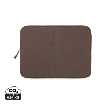 6 Inch Laptop Sleeve in Brown. the Kento Laptop Sleeve is Made From Super-Light Rcs-Certified Recycled Nylon (228T) with a PU Backing & Finished with an Rcs-Certified Recycled Polyester 300T Lining. Containing 55% Certified Recycled Material, It Combines Responsible Design with Everyday Durability. the Secure Main Zipper Compartment Fits a 15.6” Laptop & Features 4 Mm Padding for Reliable Protection. a Front Zipper Pocket Keeps Your Small Essentials Within Easy Reach, Making It Perfect for Busy Days in the City, at School, or at Work. Lightweight & Functional — Built for a Young, Modern Lifestyle. Minimum Quantities Apply.