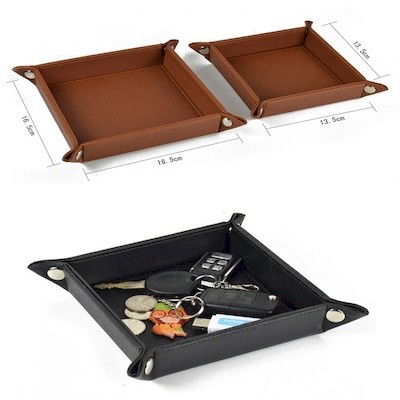 Keep All Your Odds & Ends in One Place by Using This Leather Desk Organizer! Made of PU Leather, This Catch-all Style Organizer Can Hold Your Keys, Spare Change, Candy & More. It is a Stylish Way to Keep Your Desk Clean, & with a Stamped or Printed Logo or Company Name, Youll Promote Your Business as Well. Perfect for the Office, Conference Rooms & Even at Home! This Practical Promotion is Sure to Make an Impression on Clients Every Day!
