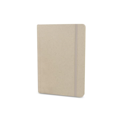 This Sustainable A5 Note Book Features a Cover Made From Grass Fragment Paper. It Contains 80 x Sheet of FSC 70G & M² Lined Paper, with an Elastic Elastic Rubber Band Closure & a Ribbon Bookmarker. Minimum Quantities Apply.