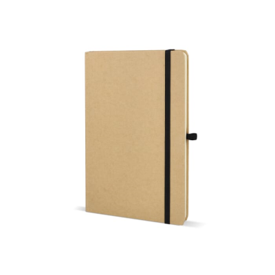 A5 Note Book with Cardboard Card Cover, Rounded Corners, Colour Elastic Closure, Ribbon Marker, & Pen-Loop. Includes 80 Lined Cream Pages Made From Recycled Paper. a Practical, Eco-Conscious Choice for Everyday Use. Minimum Quantities Apply.