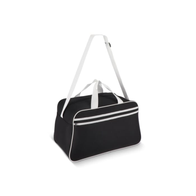 Popular-Shaped Travel & Sports Bag Made From Durable 600D Recycled Pet. Equipped with a Front Zippered Compartment, Grab Handles, & an Adjustable Shoulder Strap for Comfortable Carrying. Minimum Quantities Apply.