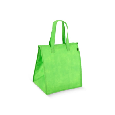 5 x 37Cm 75G & M² in Pale Green. Recycled Pet Non-Woven Cool Bag (75G & M²) with Aluminium Metal Foil Lining. Large Front Panel for Branding. Ideal for Shopping Trips or Picnics. Minimum Quantities Apply.