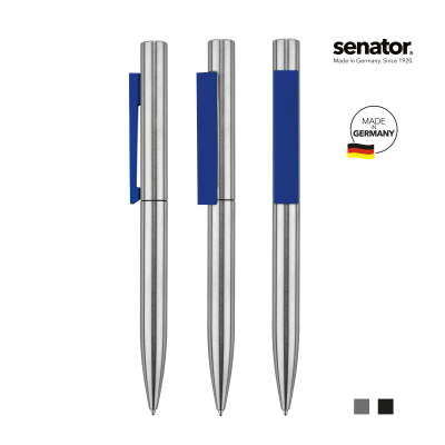 Senator® Signer Liner Twist Metal Ball Pen. Stainess Steel Sandblasted or Lacquered. Clip Plastic Clear Transparent or Polished Various Colours. Senator® Magic Flow G2 Refill (1.0 Mm), Ink Colour: Blue Minimum Quantities Apply.