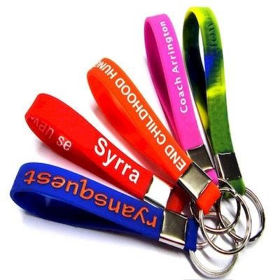 Silicon Wrist Band Keyring Chain with Split Ring. It Not Only Holds Your Keys Safely, But Also Can be Used as a Decorative Band. Custom Logo & Color Are Available.