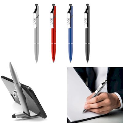 Unique Design Three in One Aluminum Stylus Mobile Phone Stand Pen, Great Twist Phone Stand Mechanism Makes the Pen Different From Others, Twist the Top Part Turns the Pen into a Mobile Phone Stand, Shiny Silver Chrome Trim, Plastic Clip & a Stylus for Touch Screen. Twist Action with Shiny Metallic Barrel & Stylus for Touch Screen, High Quality German Manufactured Black Ink Refill, 1200 Meters Writing Distance, Tungsten Carbide Ball Provides You with Quality Writing.
