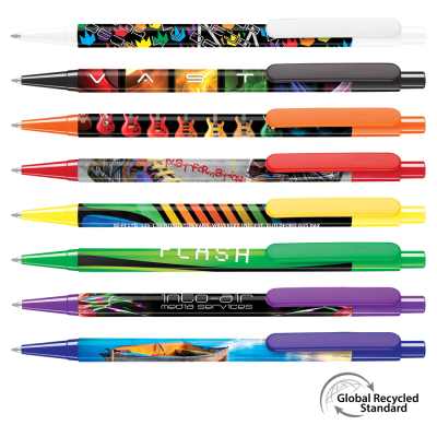 Designed to Offer Both Style & Functionality, Our Colourful Retractable Push-Button Ball Pen is Made From Grs-Certified Recycked Plastic & is Available in a Choice of 5 Trim Colours. an Ideal Canvas for Personalisation & Promotion. Suitable for Both Line Colour & Full Colour 360 Wrap Print Methods, Our Innovative Print Technology Delivers Vivid, Attention-Grabbing Designs That Stand Out in a Sea of Ordinary Pen. Print Methods: Digital Wrap,Line Colour Print Refil Colour Range - Ink Colour: Black; Colour: White, Black, Blue, Green, Red, Yellow; Minimum Quantity: 500