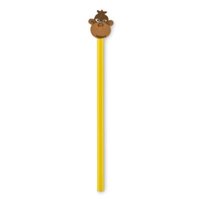 Wood Pencil with Eraser in Animal Shape. Minimum Quantities Apply.